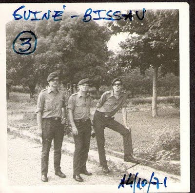 Matos, Louro e ?? (Era furriel da CCS do meu batalhão 3866), na av.marginal em Bissau.